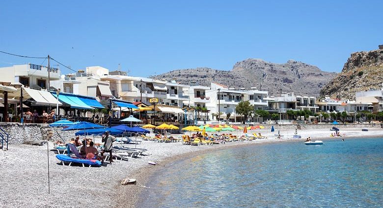 Haraki (Charaki) is an attractive little bay offering family atmosphere. The beach here is a mix of pebbles and sand, and the area is mainly