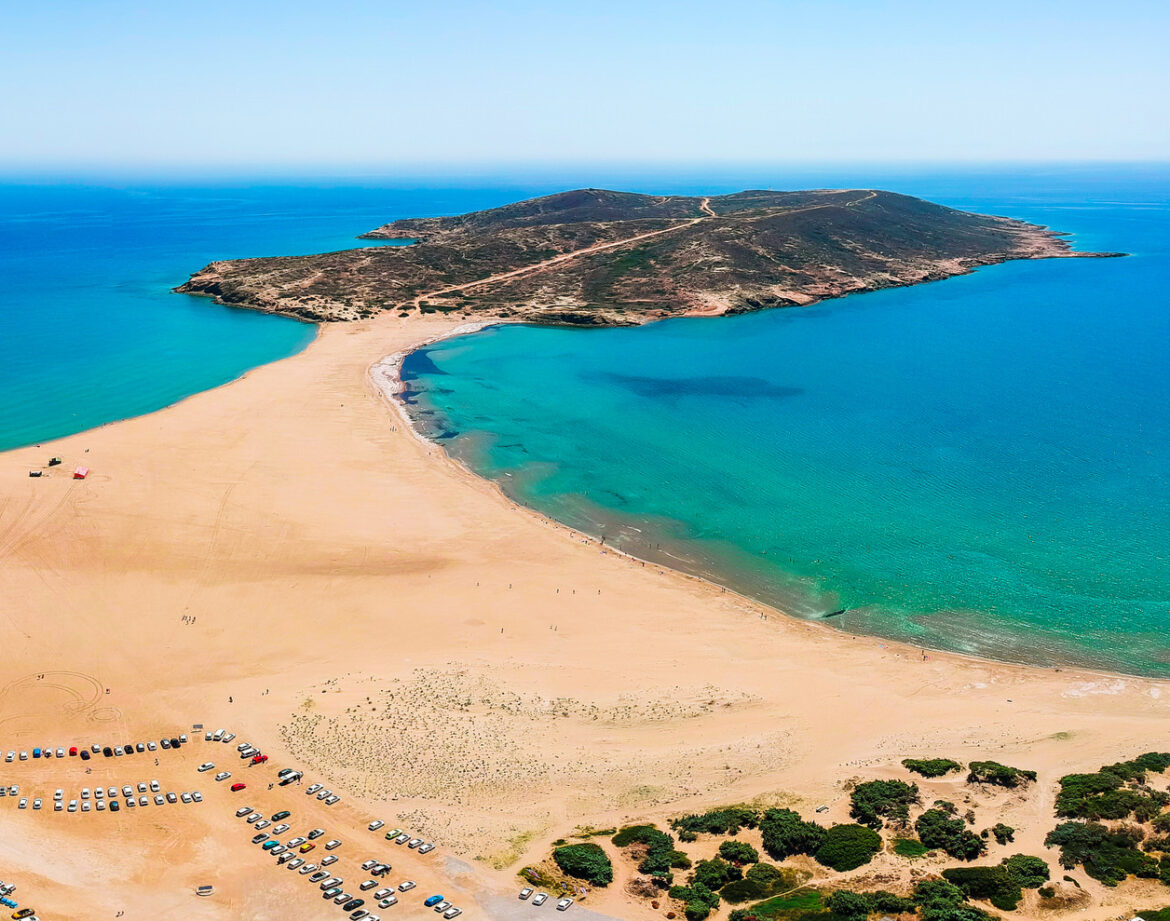 Prasonisi is noted to be a good place for windsurfing and kitesurfing due to predictable and reliable winds with certain qualities (not gusty, constant direction and during particular times of the day). From one side of the cape there is the Aegean Sea with good waves and views for advanced surfers. From the other side, there is the Mediterranean Sea with flat water which is better suited for beginners. The area has its high season for tourists in July and August and the flat side of the water becomes very busy.